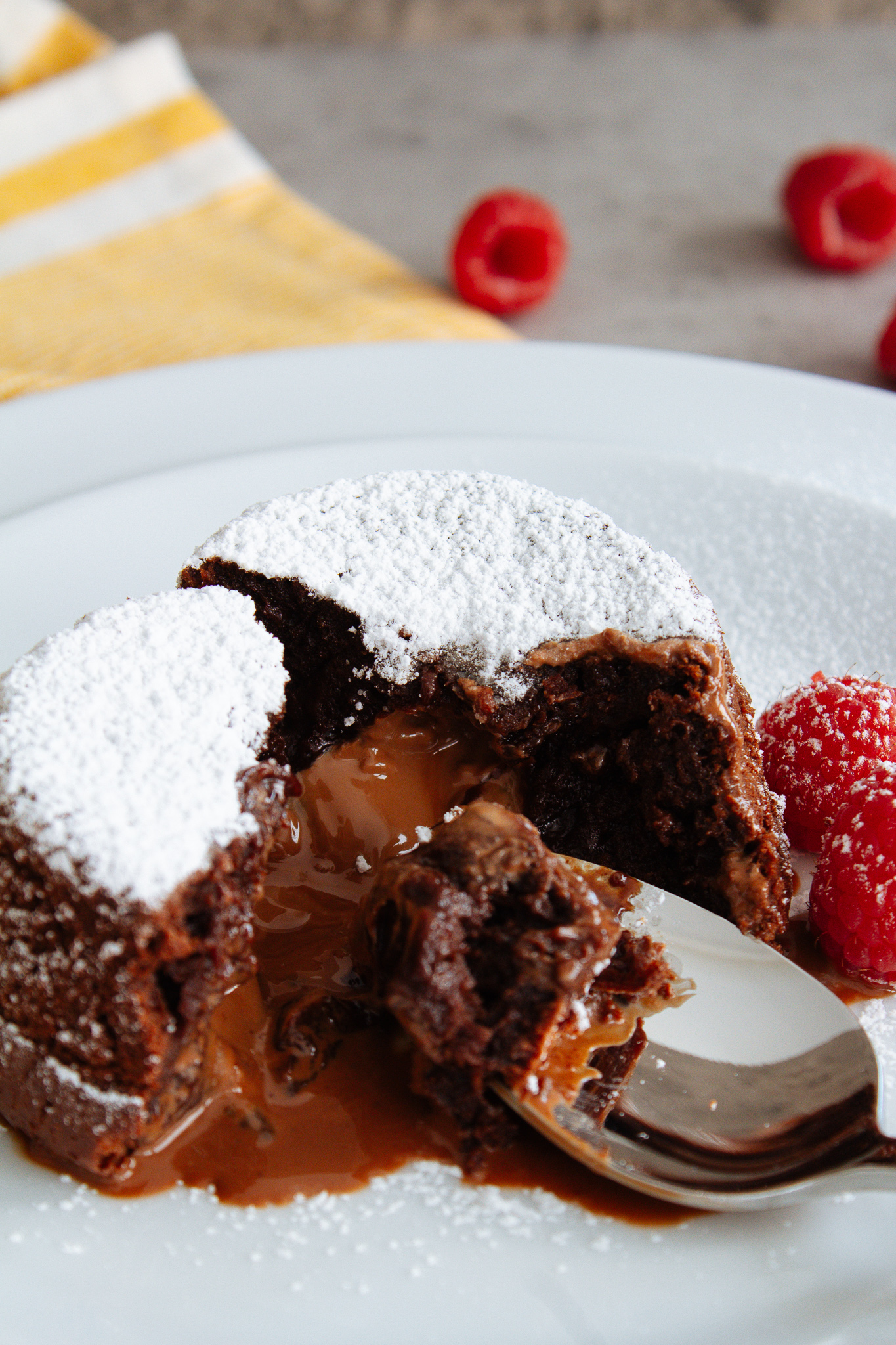 I recommend using individual ramekins to bake these lava cakes in. If you don’t have ramekins, you can use a muffin pan as well. That would result in slightly smaller lava cakes and baking time would be shorter. 8-10 minutes.