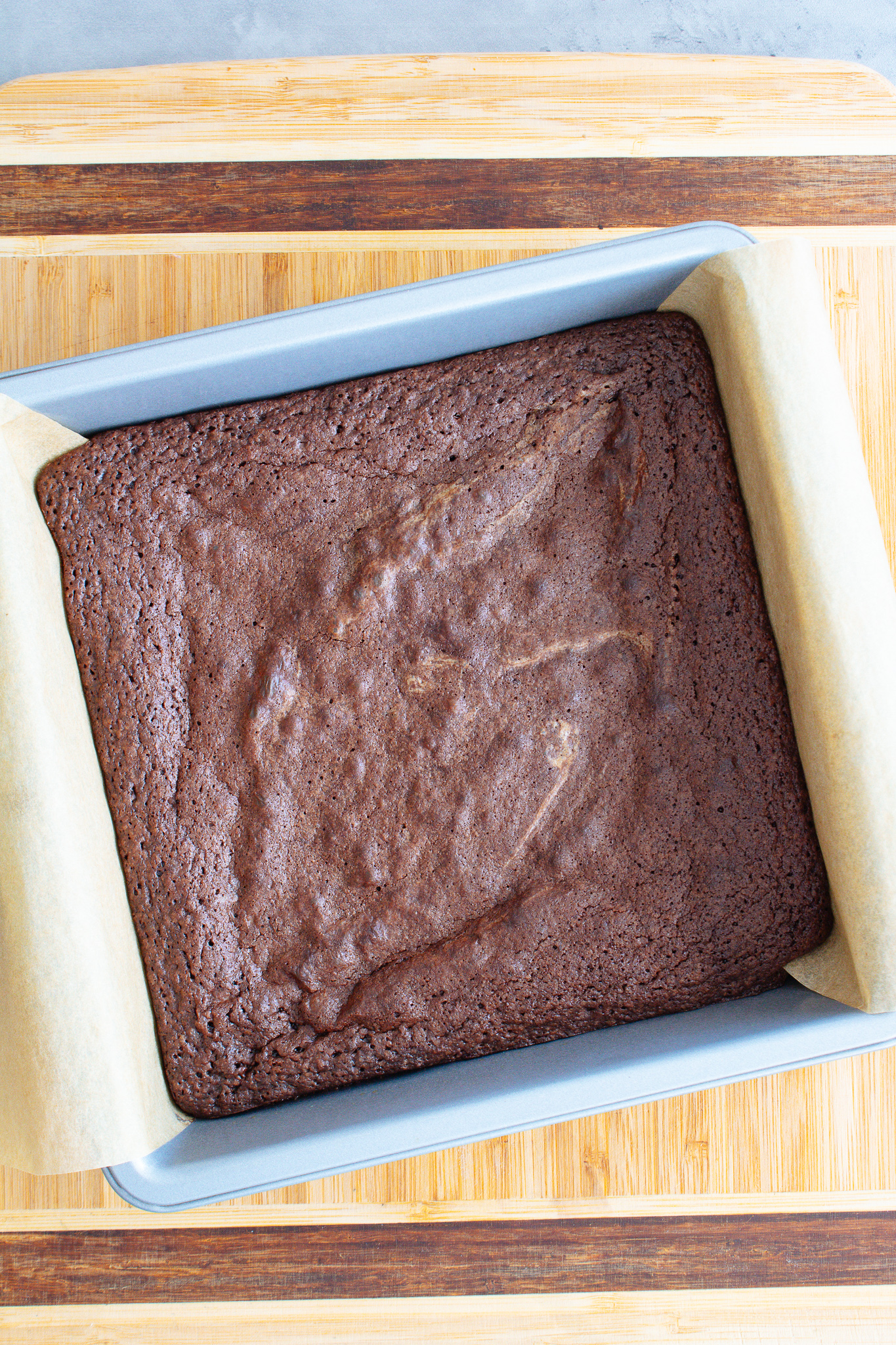 Let the brownies cool in the pan for 10-15 minutes before transferring to a cutting board to finish cooling.