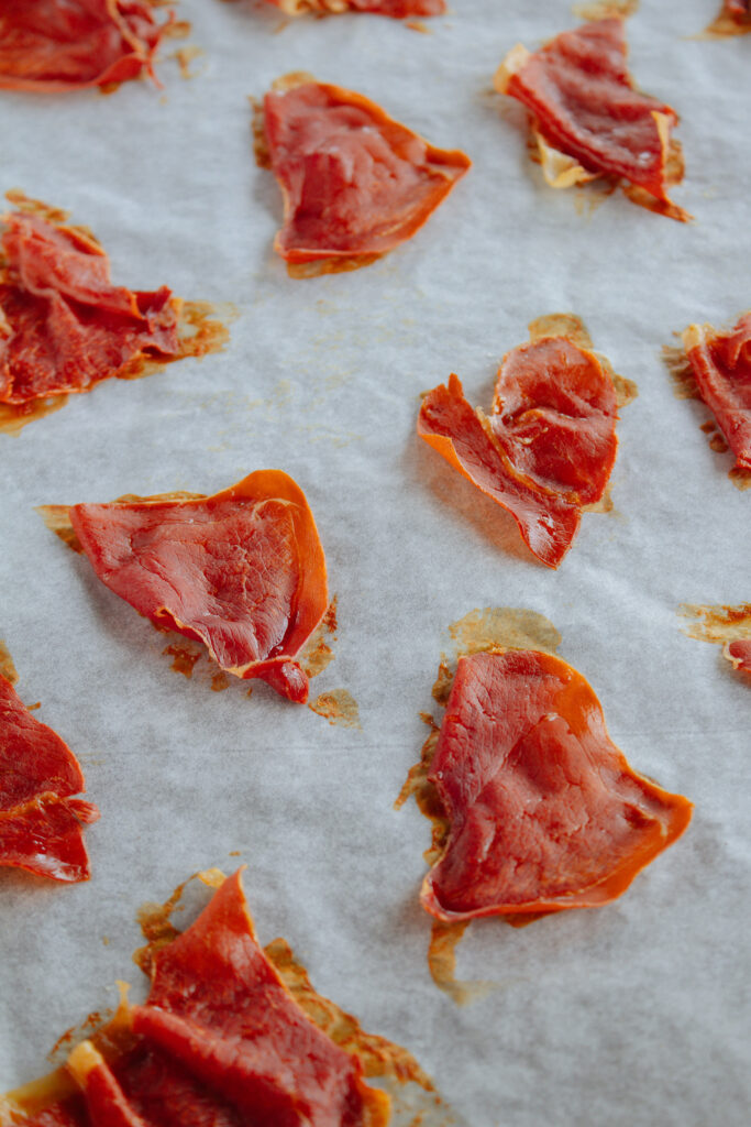 When I was studying culinary in London there was a grocery store I shopped at called M&S and I often bought baked prosciutto or salami chips. I loved them because they made a healthy low carb no sugar snack and since I’ve always loved deli meats and salty things I thought it was the perfect snack.